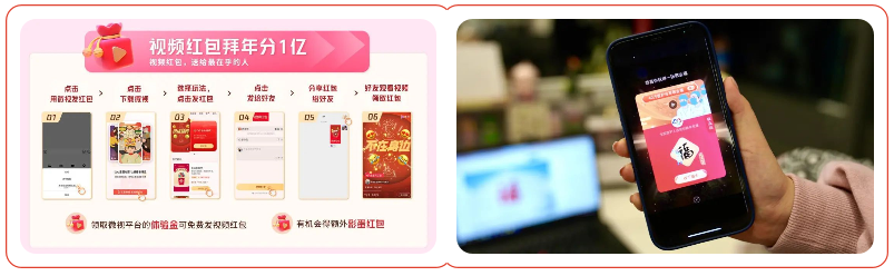 春晚红包的“鼻祖”玩家支付宝依然延续了“集五福”活动,集齐“爱国福、富强福、和谐福、友善福、敬业福”五张福合成福卡的用户在大年夜可拼手气瓜分5亿元现金。百度则连续第三年举办“好运中国年”活动,从2月2日至2月28日,用户可以通过“集好运卡”、“团圆红包”、“拜年红包”等六大活动瓜分22亿福利。腾讯微视在春节期间还推出了多种红包玩法,用户可以参与瓜分5亿元奖金。