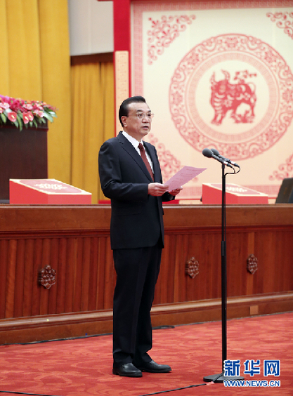 党和国家领导人李克强、栗战书、汪洋、王沪宁、赵乐际、韩正、王岐山等出席团拜会,李克强主持。