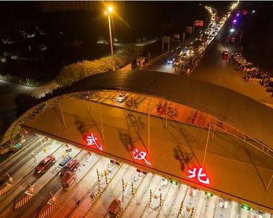 4月8日凌晨,车辆通过武汉北高速收费站(无人机照片)。