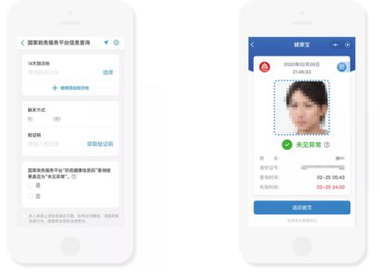 步骤二:通过查询国家政务服务平台进行行程记录及风险地区验证,即可获得“未见异常”健康状态。
