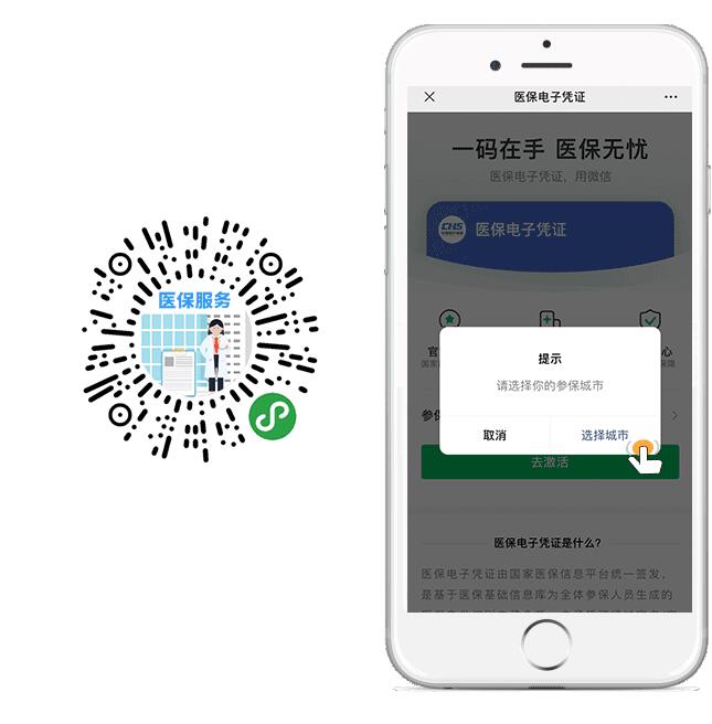 扫码进入“国家政务服务平台”医保服务,点击后选择参保城市并根据提示进行实名和实人认证,即可激活。