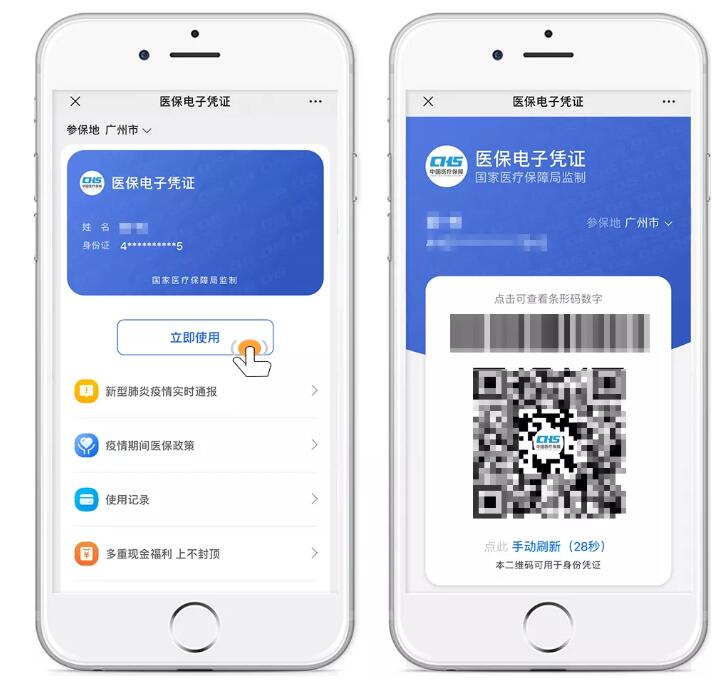 在你需要挂号、支付医药费、入院登记、出院结算、药店买药等时候,点击医保电子凭证下方的“立即使用”,将出现的条形码和二维码向医院或药店出示,即可“无接触”完成验证支付。