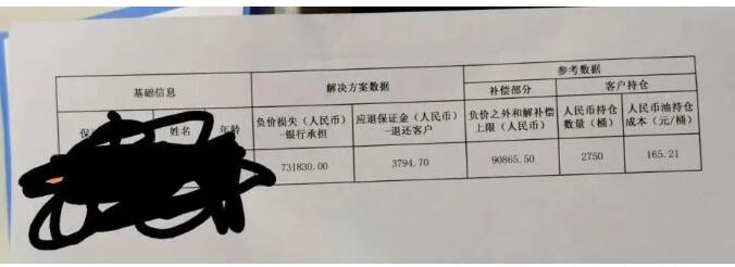 一位广东的投资者A告诉中证君:“刚刚和中行进行了电话沟通,对方称,负价损失由中国银行承担。此外,保证金全额退回,本金退回20%。”