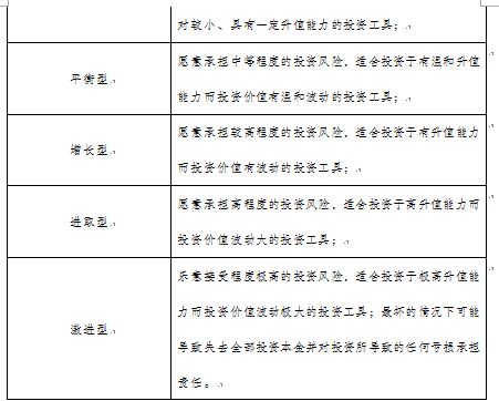 其中,客户风险承受能力等级表述调整对照中,激进型表述为乐意接受程度极高的投资风险,适合投资于极高升值能力而投资价值波动极大的投资工具;最坏的情况下可能导致失去全部投资本金并对投资所导致的任何亏损承担责任。