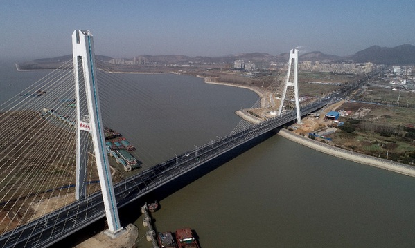 这是1月12日拍摄的巢湖大桥(无人机照片)。