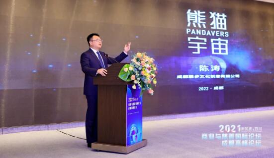 随后,成都攀步文化创意有限公司董事长陈涛先生,向现场观众分享了“熊猫宇宙与国际交流合作项目”。从熊猫IP授权、链接渠道、创意内容、数字藏品、实物文创、文旅地产等各方面向现场观众展示了一个充满活力、蓄势待发的熊猫宇宙。